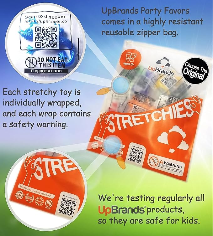 - Great sensory fidget toys for Easter Basket Stuffers. The lizards are individually wrapped and will easily fit in plastic Easter Eggs used for Easter hunt. UpBrands Stretchy Lizards Toys 72 pack - an excellent kit for birthday party favors for kids. Children will play with these stretchy rubber lizards toys and will love to share them in goody bag stuffers.