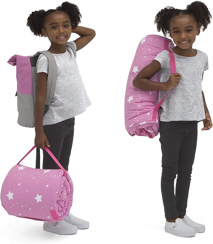 Delta Children Nap Mat - Includes Pillow & Blanket for Toddlers and Kids; Features Carry Handle w/Strap Closure and Name Tag; Rollup Design is Ideal for Preschool and Daycare; Personalization Optional