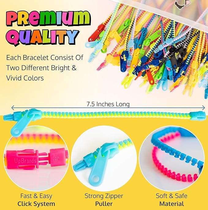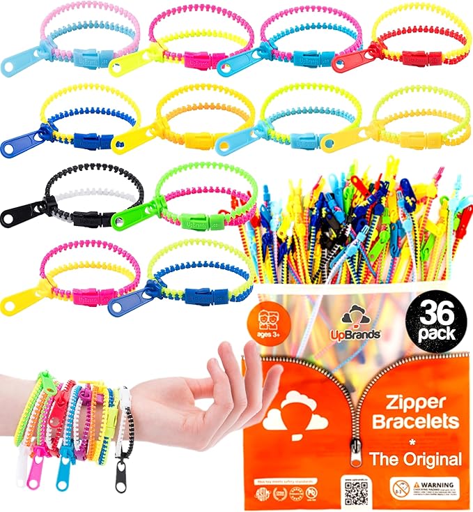 - UpBrands Fidget Zipper Bracelets: A 36-pack of colorful joy, perfect for making every birthday bash and classroom event a hit with vibrant party bag stuffers that everyone loves!