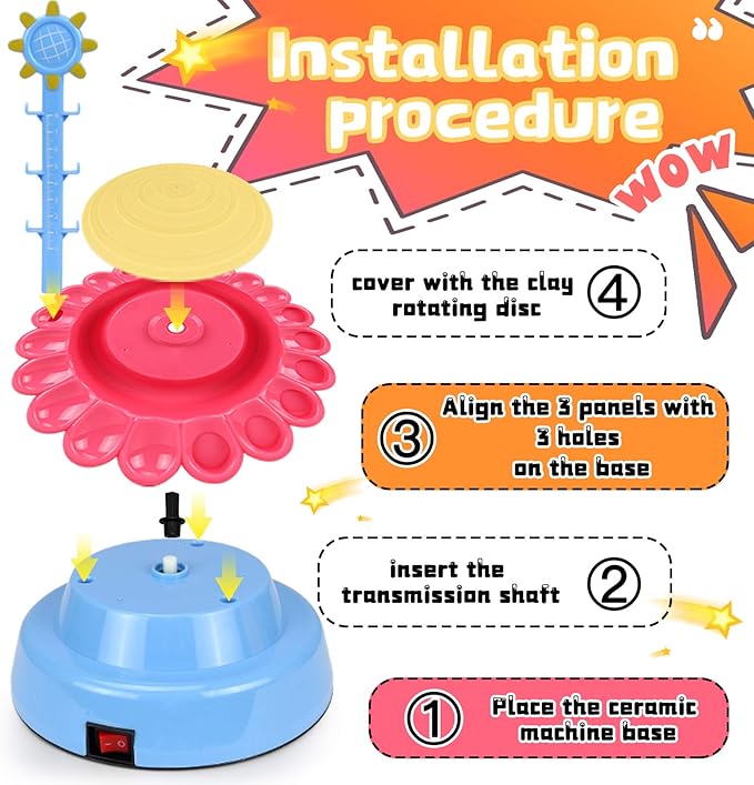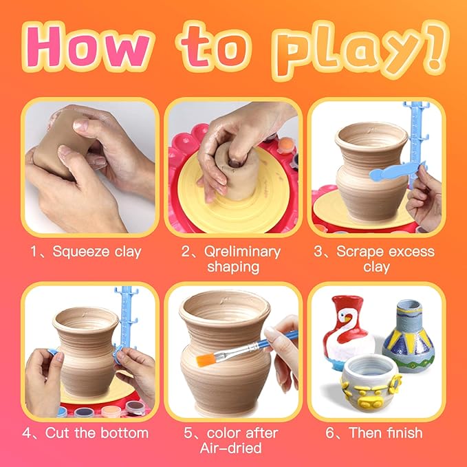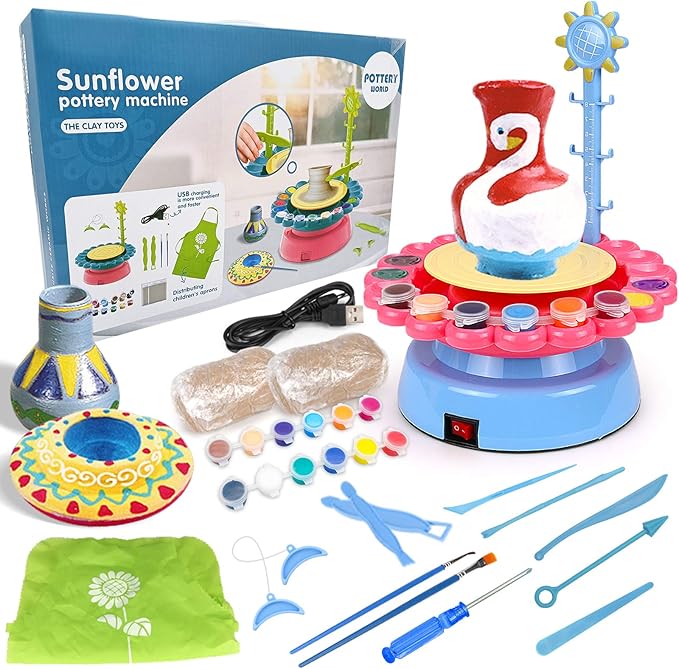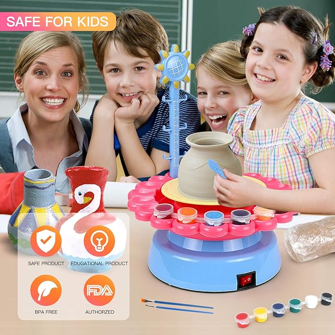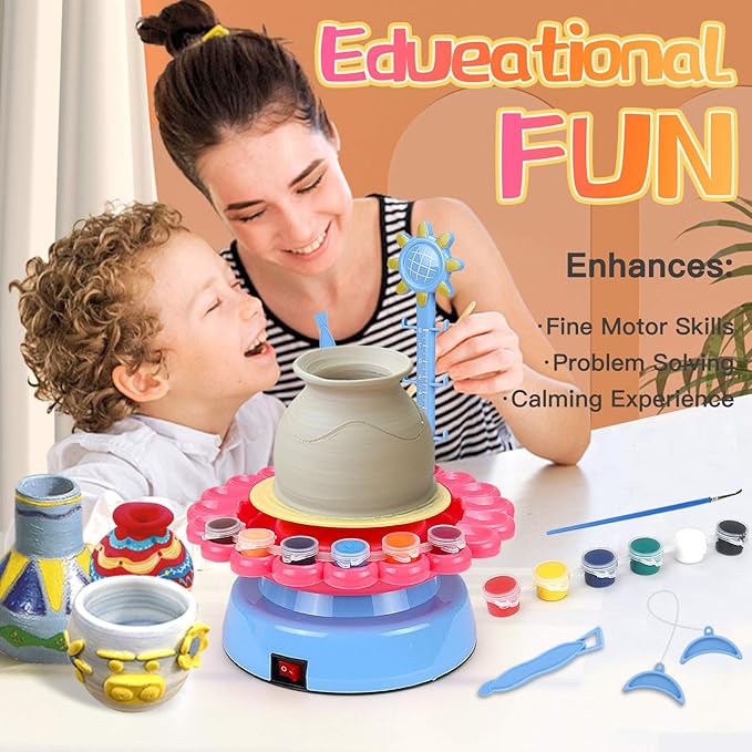 Pottery Wheel Art Craft Toys - Kids Art Kit Polymer Air Dry Clay Modelling Clay Kit for Kids DIY Pottery Studio Family School Beginner Education Sets (Blue-Pink)