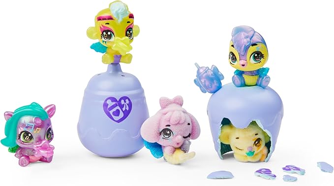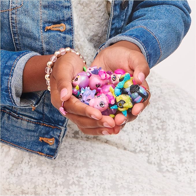 - SHIMMER BABIES HATCHIMALS: Open the lid to find 8 Shimmer Babies in-egg and 4 out-of-egg. These super sweet shimmery Hatchimals come in playful poses with a rattle, bottle, or pacifier accessory – so cute