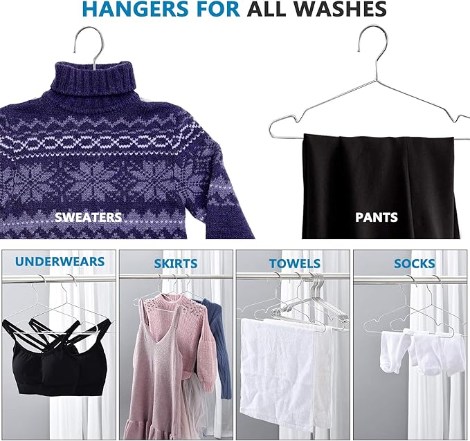 - ★Ultra thin: With the slim gage, these wire hangers can be the space saving choice for your closet. These hangers make your wardrobe look more elegant and neat. Your wardrobe don't need to take up too much space because of thin coat hangers.