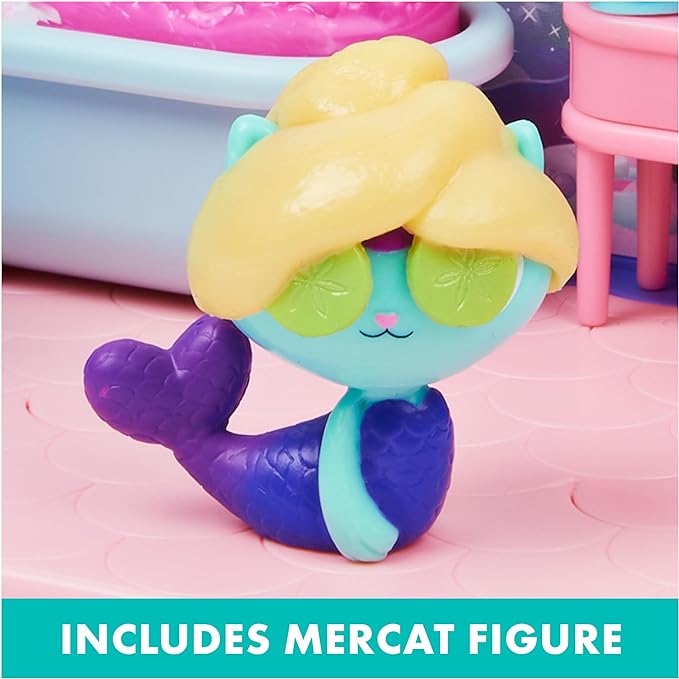 - 2 DOLLHOUSE DELIVERIES, 2 SURPRISE ACCESSORIES: Discover 3 accessories – a rubber duck kitty, plus 2 more in the Dollhouse Deliveries – unbox them to find perfume and a towel wrap and cucumber mask MerCat can wear