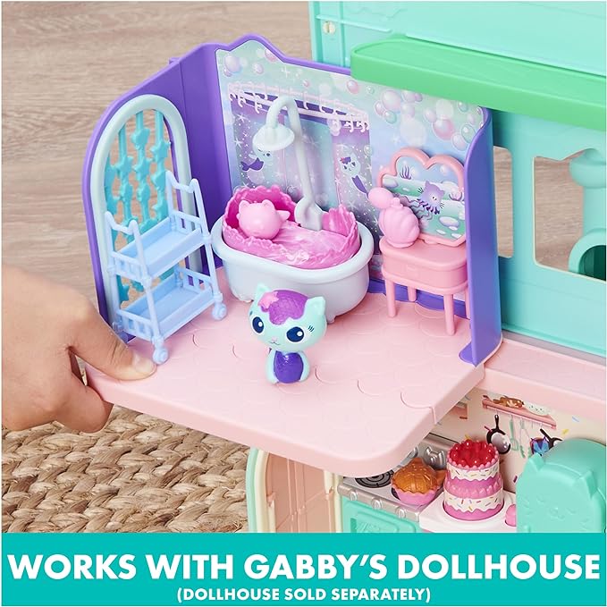 - WORKS WITH GABBY’S DOLLHOUSE: This set is perfect for fun and exciting pretend play. Use it with the other Deluxe Rooms (sold separately) or slide it into Gabby’s Purrfect Dollhouse (sold separately)