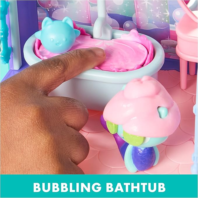 Gabby’s Dollhouse, Primp and Pamper Bathroom with Mercat Figure, 3 Accessories, 3 Furniture and 2 Deliveries, Kids Toys for Ages 3 and up