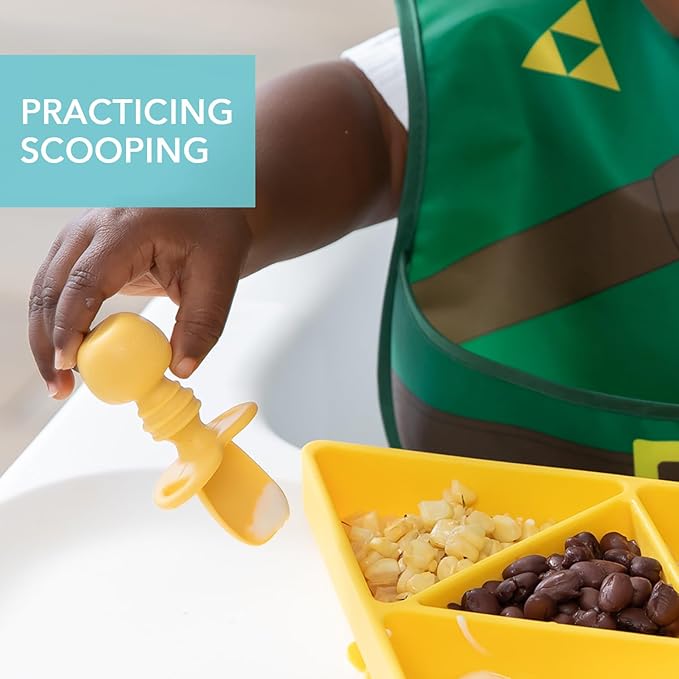 - GENTLE ON GUMS – Textured silicone is not only easy-to-grip, but soft and gentle on gums; Chewtensils can be chewed by teething babies; the back of the spoon head has sensory bumps to stimulate gums