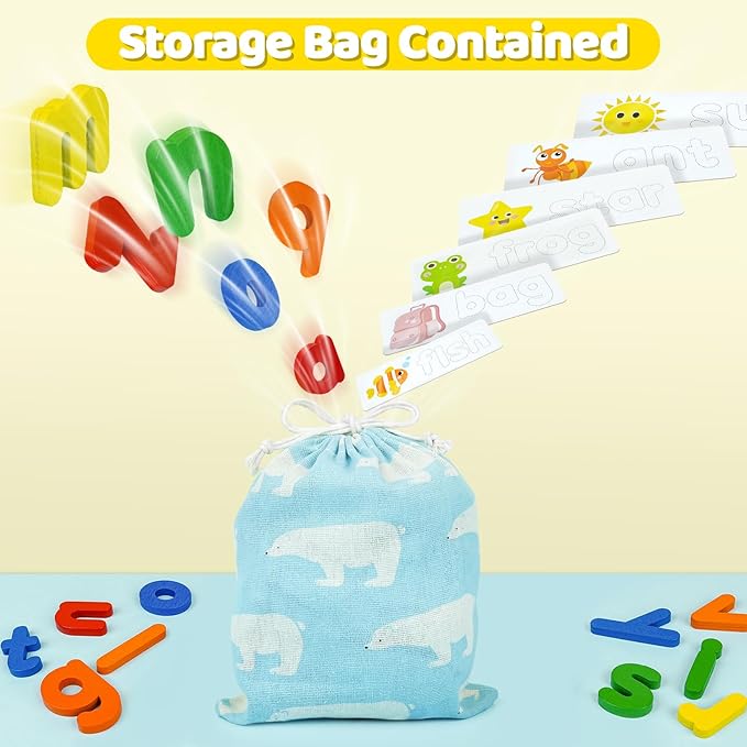 - Wonderful Learning Toys for Toddlers 2, 3, 4 Years Old: Toddlers just need to place the right wooden letters on top of the flash cards, easy and fun to learn new words and letters!
