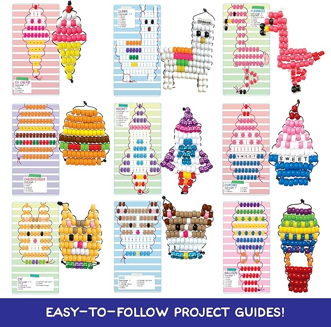 - MAKE 26 UNIQUE BEAD DESIGNS: Choose from 26 different project guides to create lizards, ice cream sundaes, rainbows, llamas, and so many more! Or lay beads in the beading tray to plan your own design!
