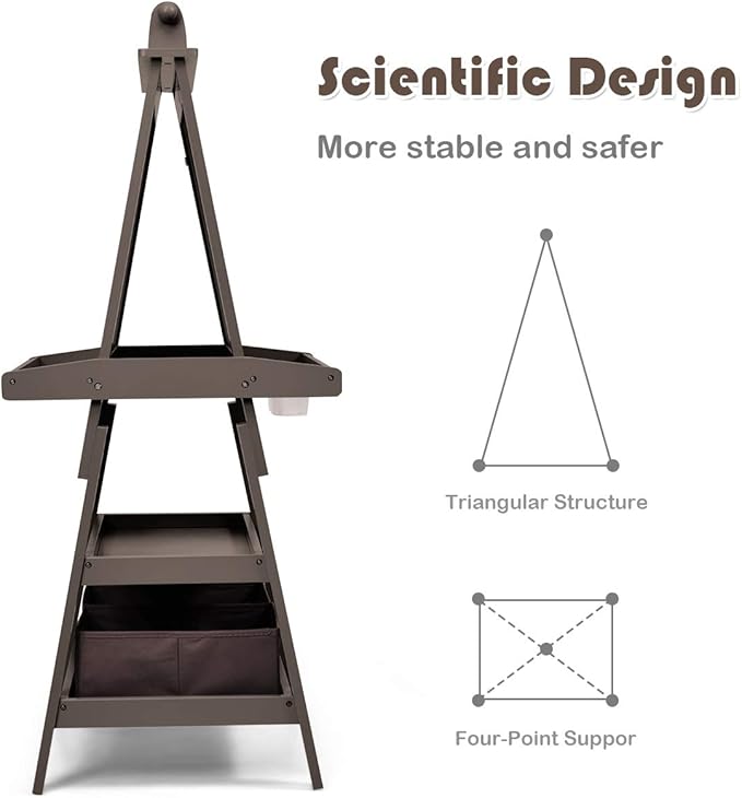 - Large Storage Space: There are 2 trays under the drawing board on both sides, which offer convenient space for storing art accessories temporarily. Besides, the kid’s art easel with storage is equipped with 2-tier storage shelves to help keep your little artist's art supplies tidy and orderly.