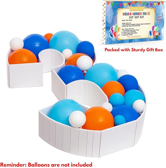 - PRE-CUT KITS FOR INSTANT GLAM: Our mosaic balloon frame is designed for quick and hassle-free assembly. Just grab your glue gun, follow the easy instructions (included), and witness the magic unfold in your celebration with a Joybox Design balloon number frame.
