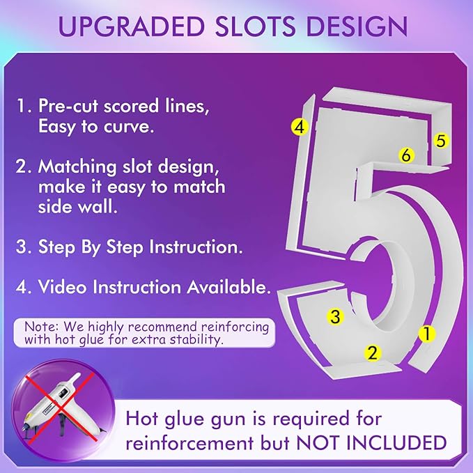 - PRE-CUT KITS FOR INSTANT GLAM: Our mosaic balloon frame is designed for quick and hassle-free assembly. Just grab your glue gun, follow the easy instructions (included), and witness the magic unfold in your celebration with a Joybox Design balloon number frame.