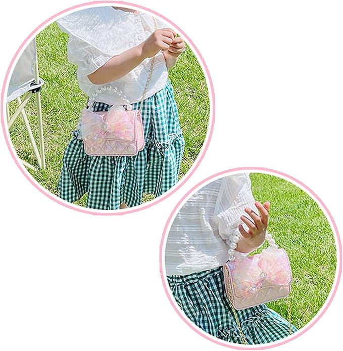 - Product size: Handbag 5.2*4*2.2, two way of use, hand or shoulder, just the right size for kids. Approx 6 inch circle for Bracelets, stretchable and durable string,easy to maintain. Ring is adjustable. No Piercing Required, Fit for Children with Non-Pierced Ears.