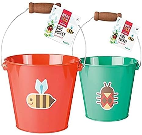 Toysmith Beetle & Bee Kids Bucket, Children's Gardening Bucket, Colorful Beach Bucket, Assorted Colors