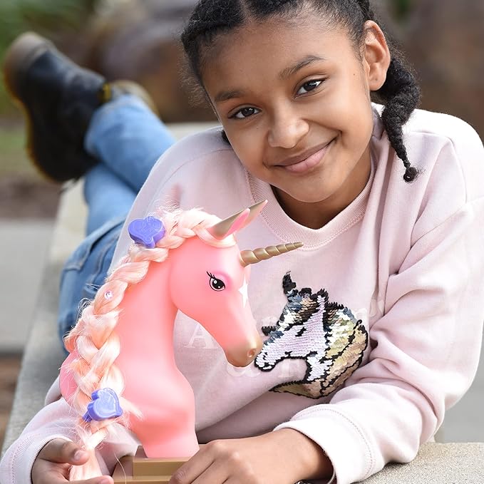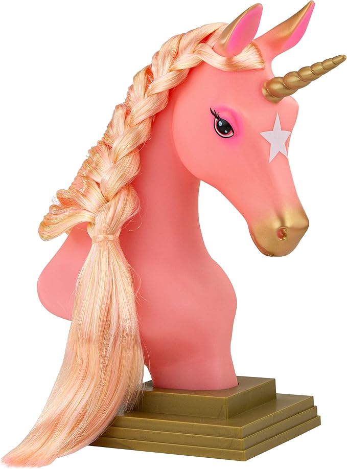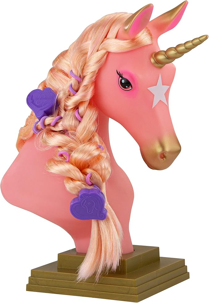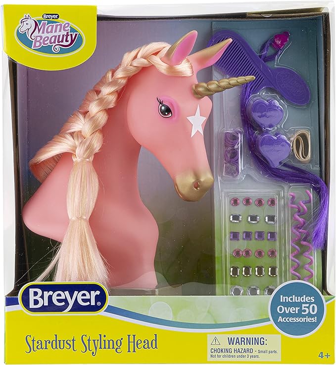 Breyer Horses Beauty Styling Head | Stardust | Pink Extra-Long Silky No Tangle Mane | 10" x 4.25" x 4.25" | Styling Book, Brush, Hair Coils, Clips, Elastics | Unicorn Toy | Model #7405