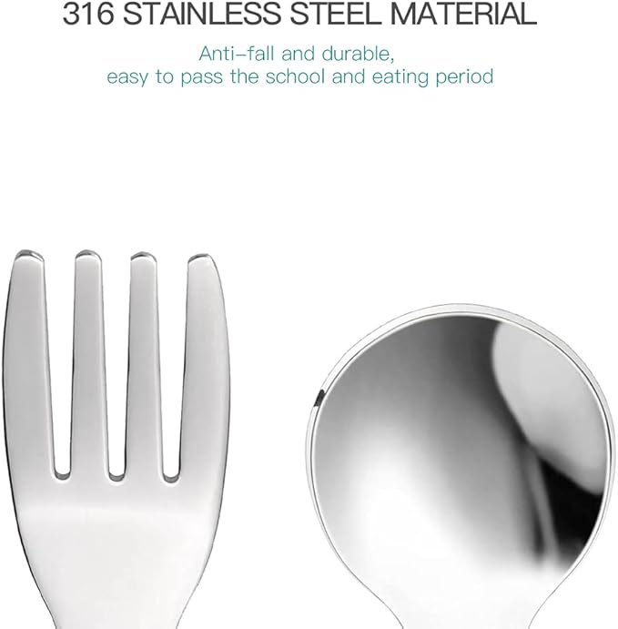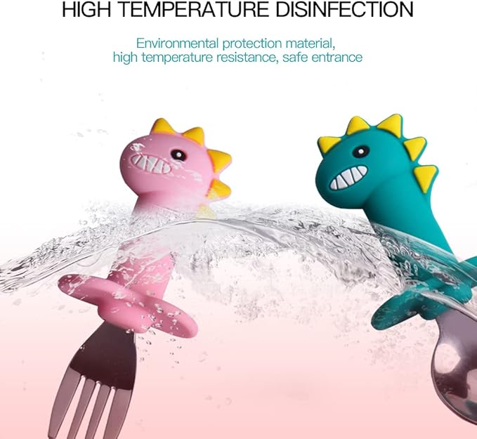 - ERGONOMIC DESIGN – The Cutlery's Ergonomic, wide handle is Covered by Silcone Soft glue, the material is soft and Non-slip which makes it Easy for little hands to grab and Manipulate, Assists Easily in Picking up Food. Ready To Feed with ease!