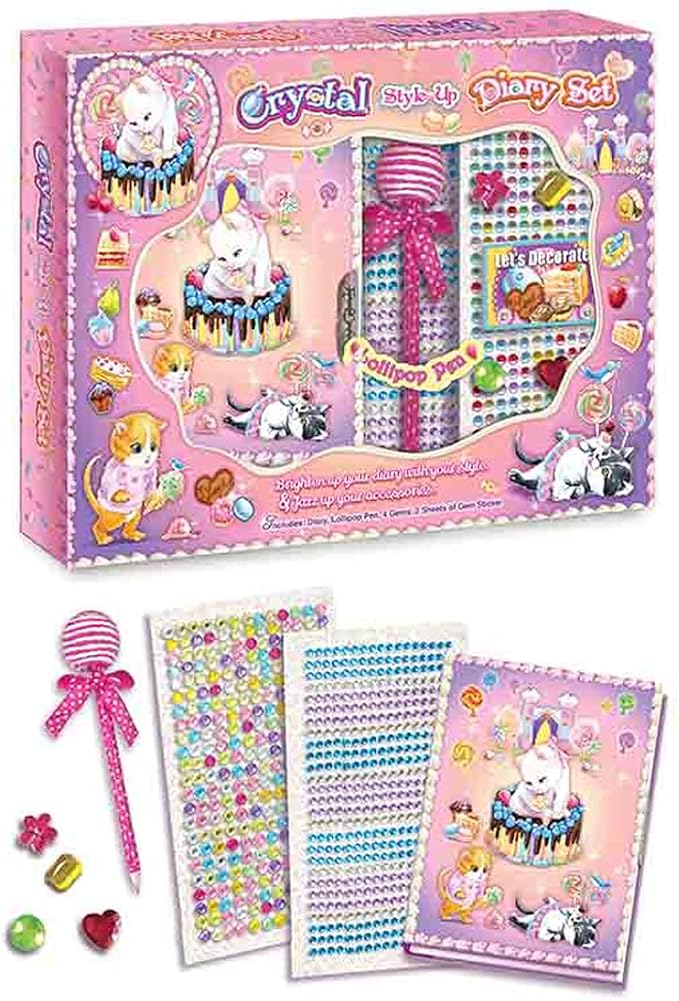 - Let's Decorate -Sweet kitty Crystal Style Up journal Set in a case ,Large gifts box: 11.5*8.7*1.4"