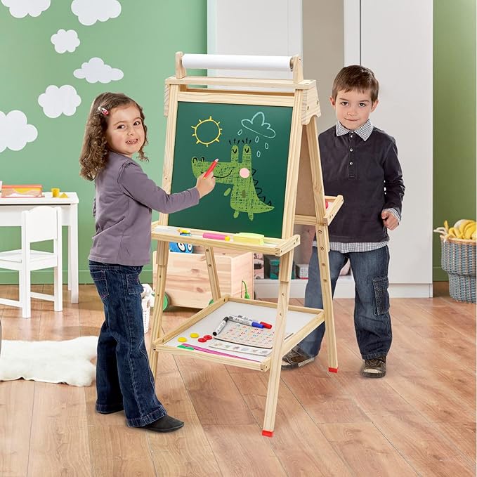- Best Gift for Boys and Girls: Best gift for little artists ages 3 and up. The kids easel is great for little ones to learn, practice skills and eye hand coordination for toddler, boy and girl. Double-sided painting easel is big enough to allow two kids to draw and play at the same time. Will bring child a rare surprise on birthday, Christmas and Children's Day!