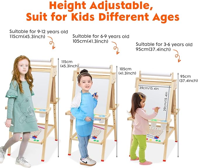 - Adjustable Height Ranged 3 Levels: The height of the art easel can be adjusted from 37.4 inches to 45.3 inches to suitable different kids height.