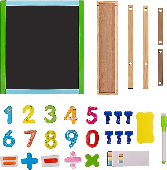 - Painting, Drawing & Art supplies: The easel stand come with a dry erase marker, 6 chalk, a dry erase eraser, 15 magnetic numbers.