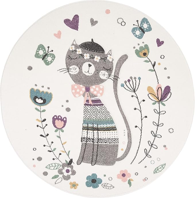 SAFAVIEH Carousel Kids Collection 4' Round Ivory/Pink CRK187A Parisian Floral Cat Non-Shedding Playroom Nursery Bedroom Area Rug