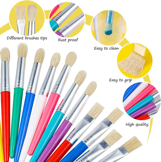 - All-purpose Preschool Paint Brushes:Total 48pcs paint brushes, a nice combination of round and flat paint brushes for kids, suitable for use with a wide range of paint types like washable paint, acrylic, oil-based and water-based paints and make a good choice for home and classroom use