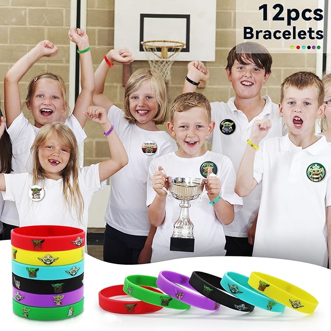 - 【Value Pack】: The 98pcs Baby party supplies contain 12pcs silicone bracelets, 12pcs adorable key chains, 12pcs different patterns button pins, 12pcs gift bag and 50pcs stickers.