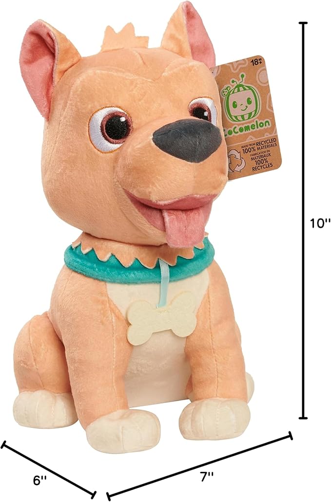 - Super-Soft and Huggable: CoComelon fans will love snuggling with this incredibly soft, sustainable Bingo the dog stuffed animal. It stands 10 inches tall and is the perfect companion for nap time, story time, bedtime, or play.