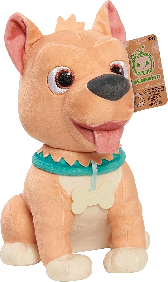 - Cuddle Up With CoComelon: Inspired by the hit YouTube Kids and Netflix series, CoComelon, the CoComelon Recycled Bingo Plush toy features super-soft fabrics, embroidered details, and a blue collar with a felt dog tag.
