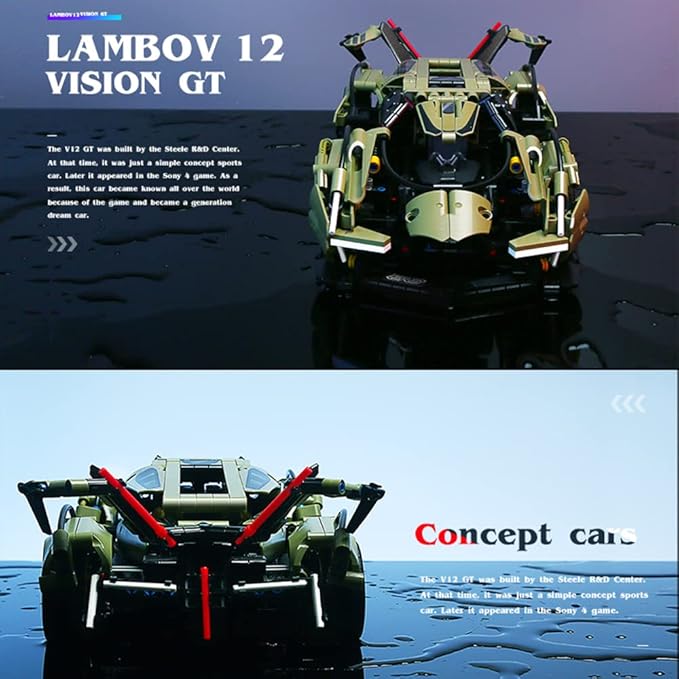 - Design Idea : The car with beautiful car body design, highly modern design and exquisite cockpit is equipped with 12-cylinder engine. The car not only have the cool simulation of the headstock and rear wing, but also the body color and the wheel rim form a bright contrast. Each building block structure is tightly connected. Do not design for design, that is design true meaning.