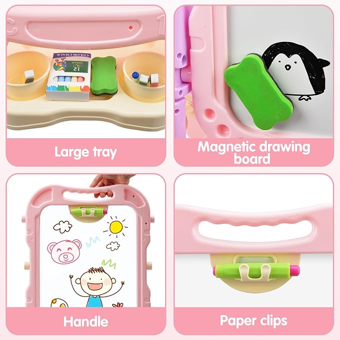 Amagoing Easel for Kids, Adjustable Standing Art Easel for Toddler, Double Magnetic Drawing Board with Painting Accessories, Birthday Christmas Gift for Little Boys and Girls, Middle Size Pink