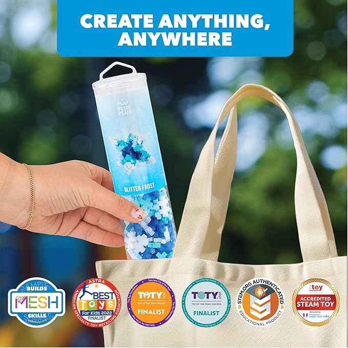 PLUS PLUS 240 Piece Interlocking Building Blocks for Kids, Open Ended Connecting Toys, STEM Bin Classroom Mini Manipulatives - Glitter Frost Mix Play Tube