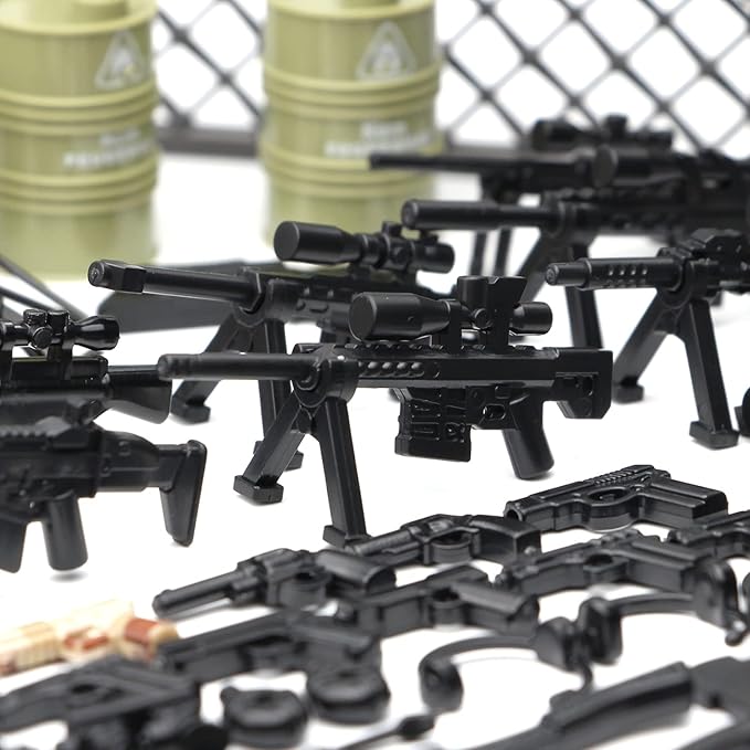 - The models in this set are designed to seamlessly integrate with army figures, allowing for realistic and immersive military scenes, you can build a special forces, the SEAL. From equipping figures with weapons with accessories, the compatibility enhances playability and storytelling possibilities.