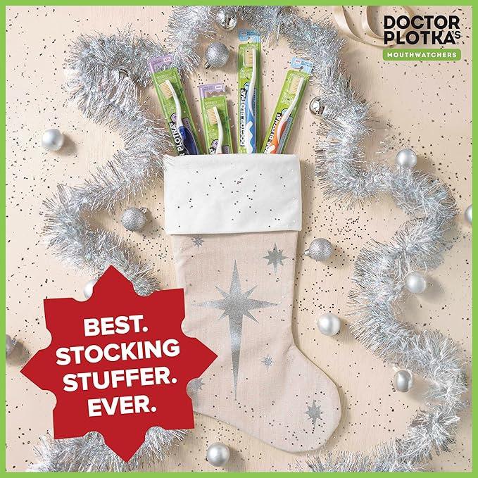 MOUTHWATCHERS Soft Kids Toothbrushes, 2 Pack, Manual Flossing Toothbrush, Ultra Clean, Yellow Childrens Toothbrushes, by Dr. Plotka's