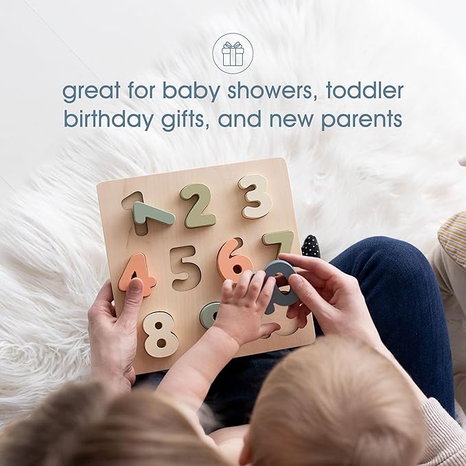 - Interactive Learning Fun: Your little one will love playing and learning their numbers with this adorable wooden puzzle by Pearhead. It’s a fun and engaging way to introduce counting and number recognition.