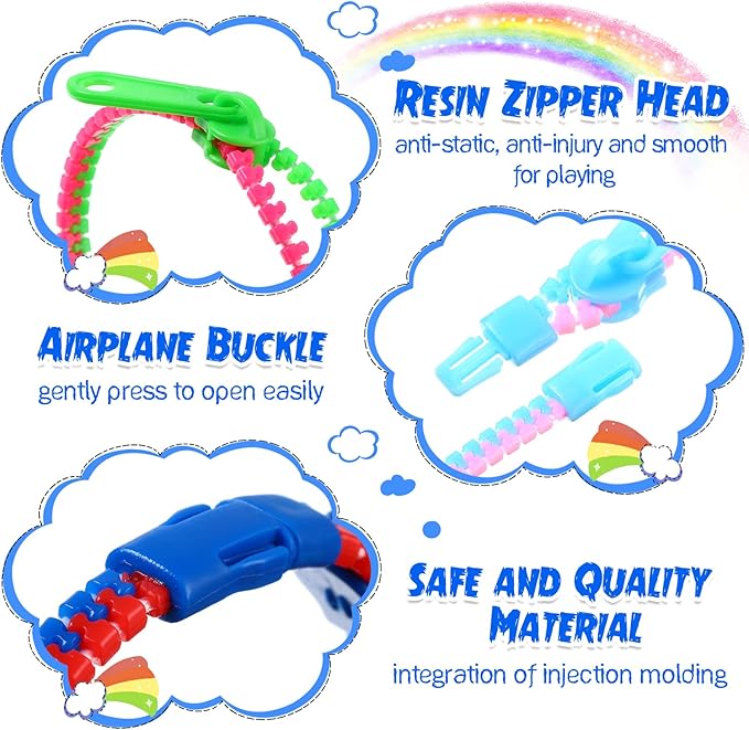 - Safe Material: friendship bracelet toy is made of quality PP material, resin zipper head, reliable, safe, anti static, no burr, preventing scratching little people's hands, with a aircraft buckle to close the loop, so press gently to open