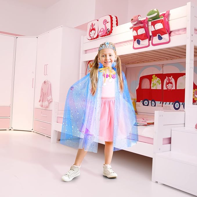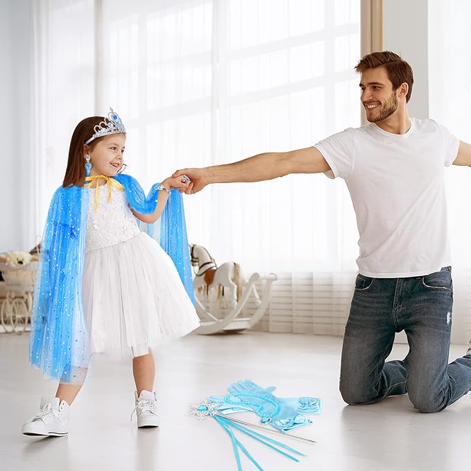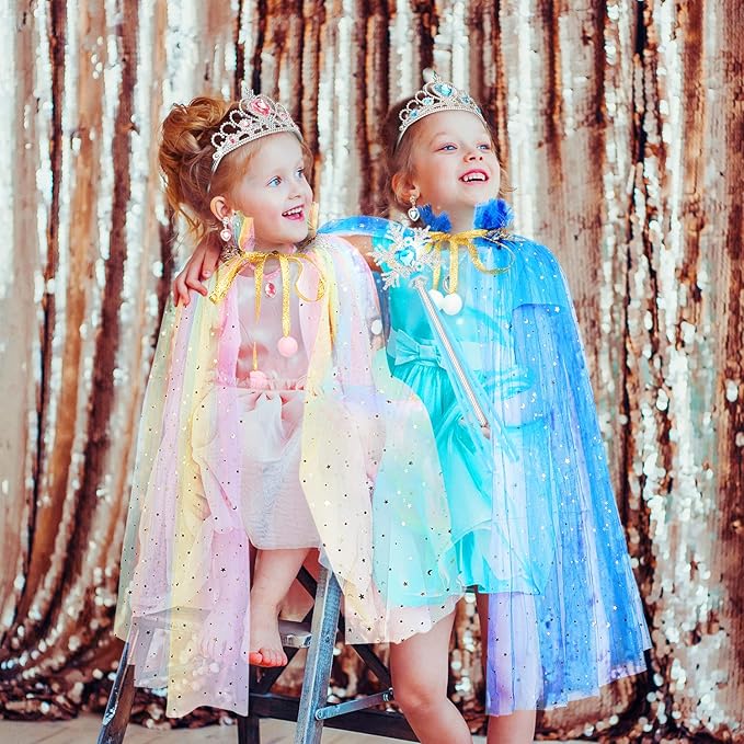 - Wonderful Gift: This lovely role play cape set perfect for play princess dress up. It's a creative charming princess costumes accessories, wonderful useful gifts for her. Your little princess would be happy to scream when opened the gift bag, she would be a pretty princess.