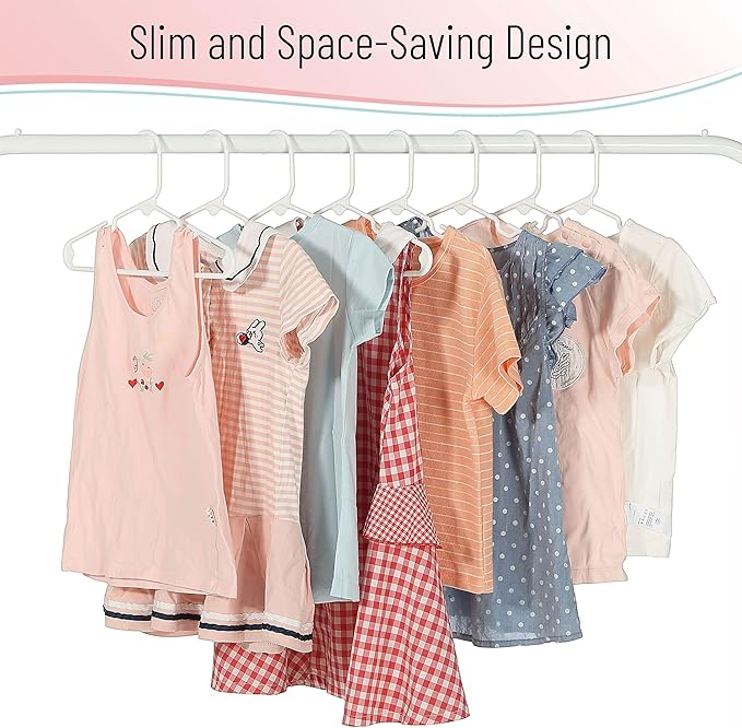 - The widening groove on each shoulder of the plastic hangers is perfect for hanging strappy clothes tightly without slipping. These slim hangers are great for for kids, toddlers, and babies' clothing.