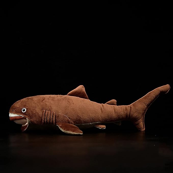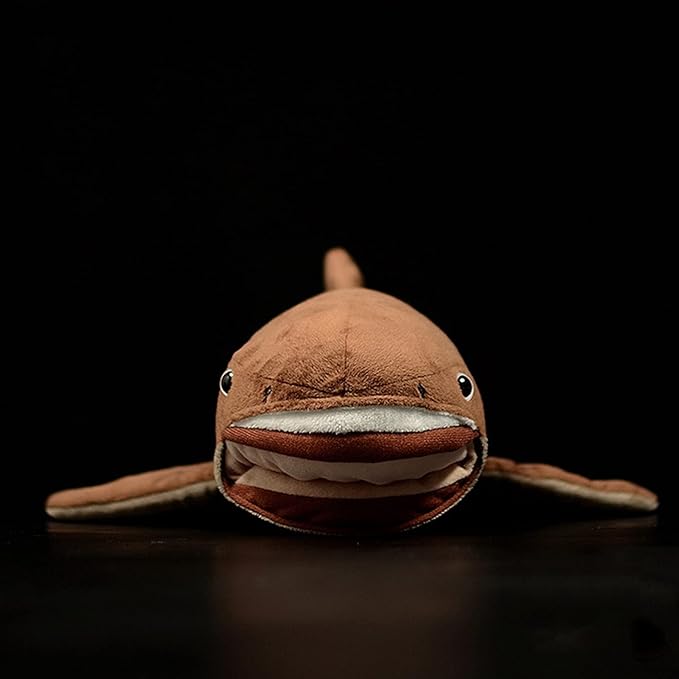 - SQUISHY SHARK PLUSH: Our megamouth shark plush imitates real marine animals. The adorable face and squeezable body of our shark plush are made from premium cloth and filler. its the brown fur is smooth and soft, bright dark brown body bottom, The big head is cute and interesting, the overall shape design is realistic, and the face design is unique, very realistic.
