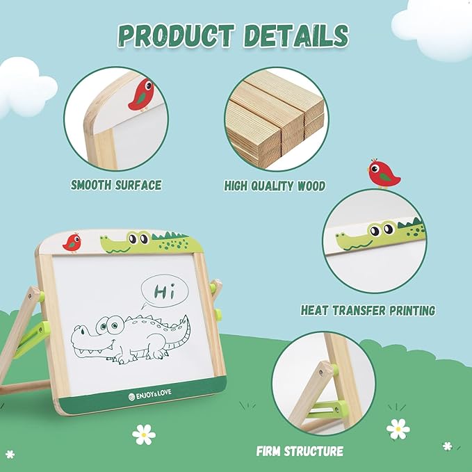 - Sturdy wooden structure: Double-sided desktop easel is a durable dry-erase board/blackboard, suitable for children 3 years old and above. It is made of high-quality wood and can be folded into a flat shape for easy storage.