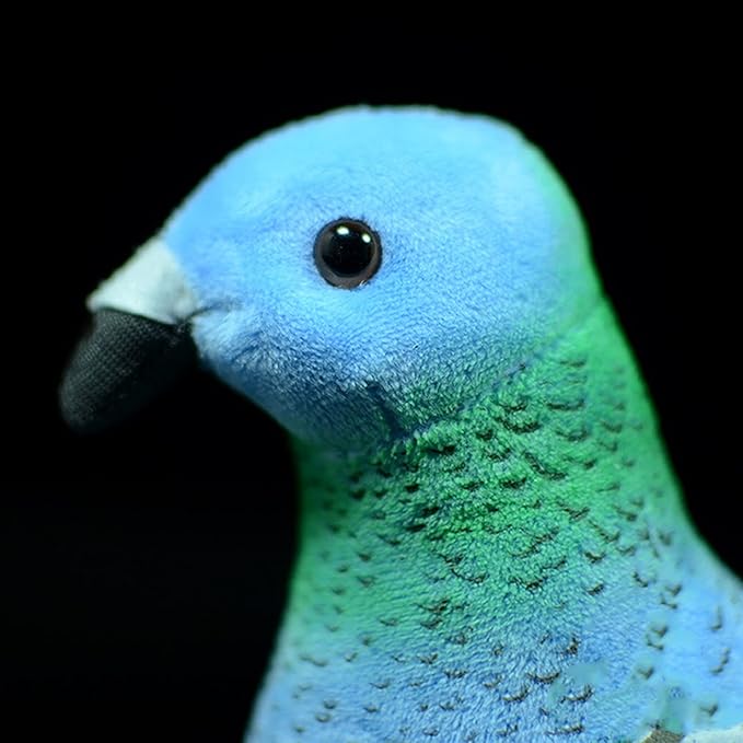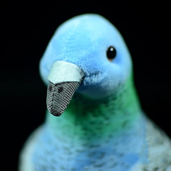 - REALISTIC APPEARANCE: Blue Pigeon are birds of the genus Columbine. The jaws of the mouth are straight or slightly curved, the base of the mouth is soft, covered with cere, and the mouth end is enlarged and horny; the neck and feet are short, and the shins are all feathered. Our team designed a vivid and lovely doll based on this image.