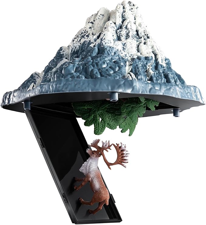 - 2-in-1 Volcano: The volcano has 2 parts, the bottom is hollow, which can store animals. It can mimic volcanic eruption. Just pour water into the tank inlet on the top of the volcano, turn on the switch. The mist will come out with lighting lava effect