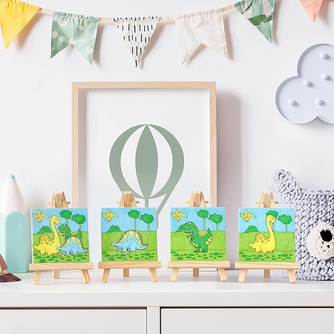 ARTEZA Kids Dinosaur Painting Kit, 4 Canvases 3 x 3 Inches, 4 Easels, 12 Acrylic Paints, 2 Paint Brushes, 1 Palette, Kids Activities for Ages 6 and Up