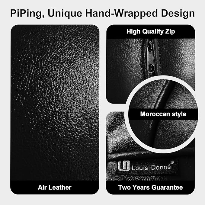 Louis Donné Unstuffed Ottoman Pouf Cover, Supersoft Handmade Faux Moroccan Decor, Small Bean Bag for Storage Solution, Foot Stool for Foot Rest, Footstools for Balcony Office Indoor 21dia Black