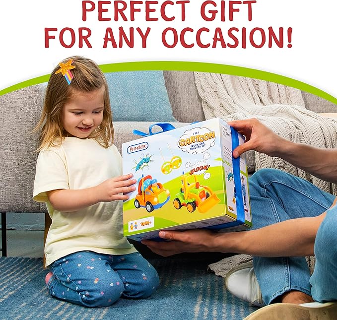 PREXTEX 2pk Remote Control Cars for 3-5 Year Old Boys - Truck & Tractor Toddler Toys