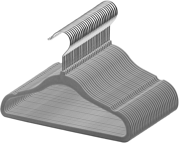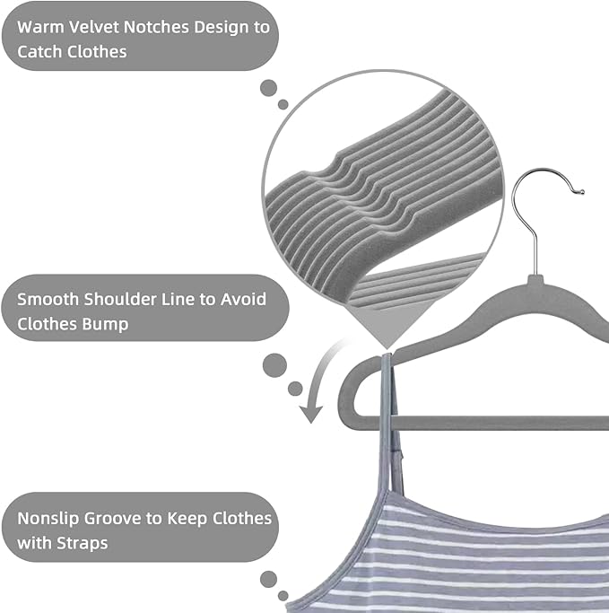 - 1. Space saver velvet kids hangers. Ultra thin slim velvet coat hangers is 0.2 inch thickness, which is thinner than other flocked baby hangers, take up less space in closet organization.