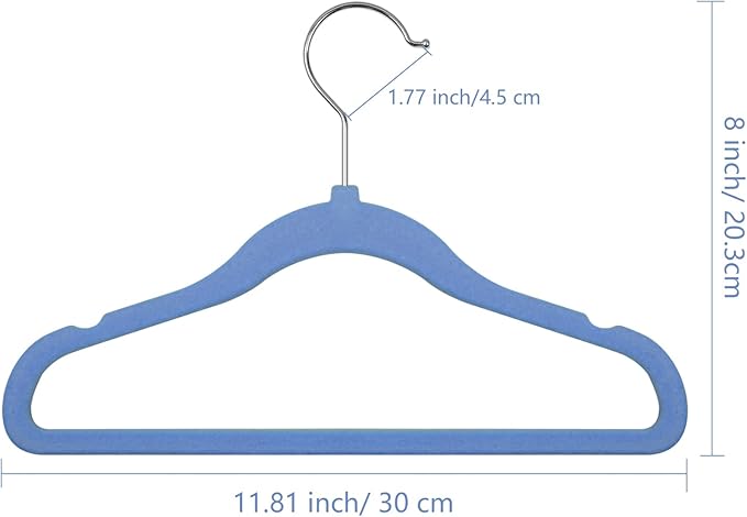 - 1. Space saver velvet kids hangers. Ultra thin slim velvet coat hangers is 0.2 inch thickness, which is thinner than other flocked baby hangers, take up less space in closet organization.