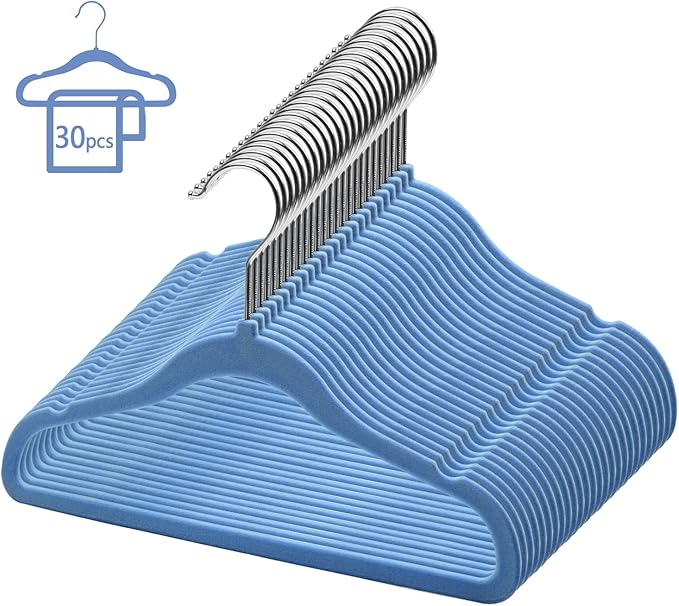 GoodtoU Kids Velvet Hangers,30 Pack Baby Hangers for Closet Non Slip Velvet Clothes Hangers Coat Hangers for Toddler Children Infant Hanger (Blue 30Pack)