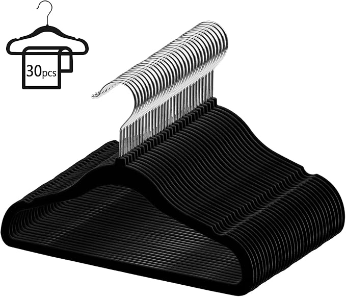 Kids Velvet Hangers, Velvet Baby Hangers Kids Felt Hangers Toddler Velvet Hangers (Black 30Pack)