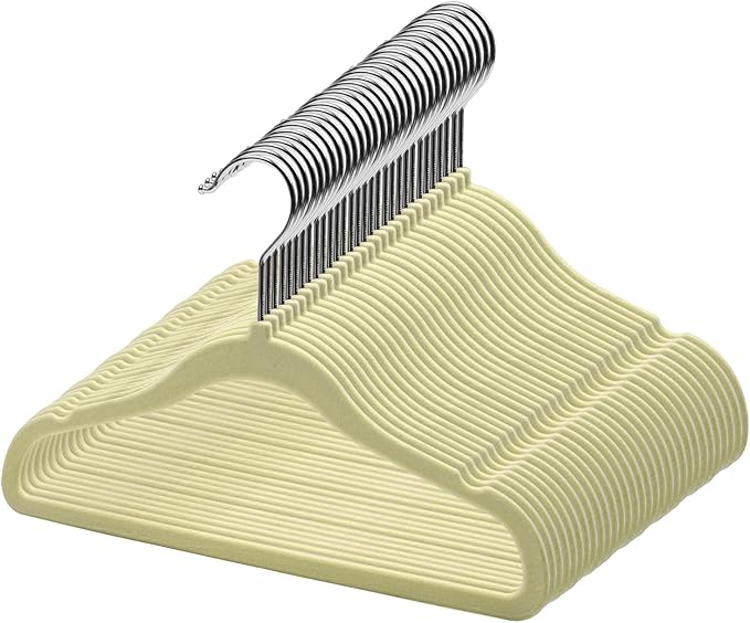 - 1. Space saver velvet kids hangers. Ultra thin slim velvet coat hangers is 0.2 inch thickness, which is thinner than other flocked baby hangers, take up less space in closet organization.