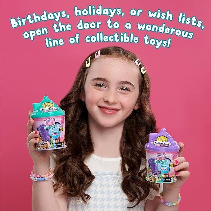 - Squish a Little, Squish’Alots: Unbox fun with the Disney Doorables Squish’Alots collectible figures. Open the door, and twist to reveal 4, 5 or 6 mystery blind bags with tiny, squishable figures waiting to be discovered.